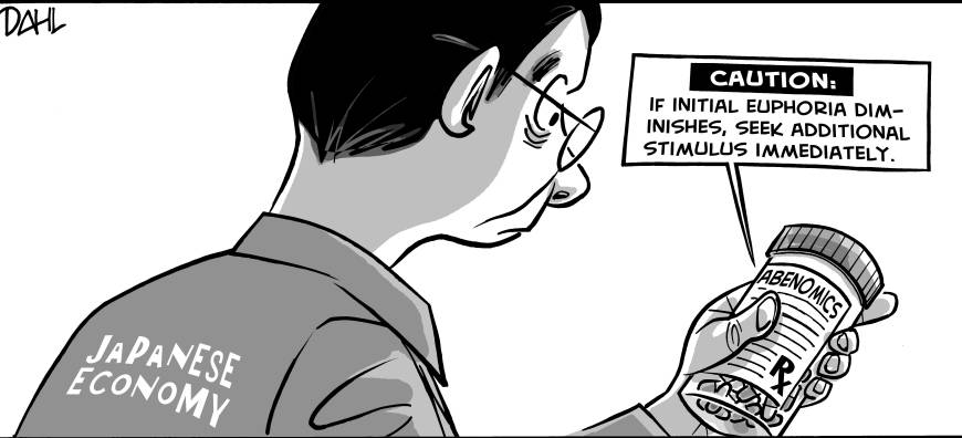 Let’s talk about EDIT660-AbenomicsRx-870x396 Abenomics. You surely know from previous posts that Shinzo Abe (spelled with either an “e” or an “i” in his first name – take your pick) has created a very different economic rubric (love that word! also ref: protocol) for Japan. The government is spending over 7.5 trillion yen a month to flood the country with yen and effectively devalue their pre-existing debt. Ref: Helicopter Ben’s QE-infinity.