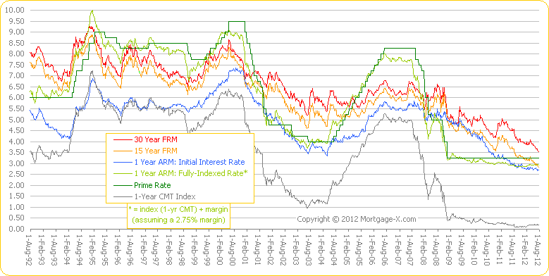 The pundits will argue over whether it will raise or lower interest rates. Net, I’d say there was no impact on interest rates. Mortgage rates for qualified buyers currently stand at 3.6% for 30 year mortgages and 2.9% for 15 year mortgages. Here’s the graphic for mortgage rates since 1992: