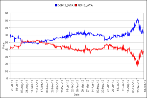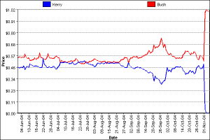 Somehow the correlation between the two graphics made me feel more confident that Obama will win this thing. The first is the Intrade betting results for the Bush/Kerry race in 2004. The second – with an offset in the time frame – is the recount of the current Intrade daily results for the Obama/Romney race. If you compare the two – even on a macro basis – you will see a fairly clear correlation. Only you have to switch the parties, because Obama is the incumbent. Obama will win, because – as I said before – he will win the state of Ohio, which made all the difference for George W. Bush in 2004. Obama’s the incumbent that all the pundits said could not win re-election because of the economy. Bush was the incumbent that all the pundits said could not be re-elected because of the Iraq War. So what happened? Bush was re-elected to preside over the greatest economic disaster in 80 years. So fast-forward to 2012: Obama has 4 years of little progress in fixing the economy, we’re still in Afghanistan after 12 years of losing because of Bush’s need to transfer troop strength to Iraq, and nobody feels good about anything. Mittens, the other candidate, is very Kerry-like in giving you the feeling that – if he were to somehow win – he’d lose control probably within the first 90 days, and that his response would be to offer nothing but excuses. Just like Kerry – who will probably be our next Secretary of State. Is this the best we can do? Unfortunately, at this point in our evolution, it is the best we can do. We haven’t sufficiently suffered to have anything better. But I’d say we’re getting close to that point, don’t you think?